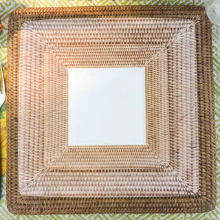 Handwoven and lacquered in Myanmar, our rattan table accents feature a durable double-weave and handcrafted charm. Constructed from naturally fast-growing rattan, these reusable pieces add an element of eco-friendly style to your tabletop. The natural material perfectly complements existing Caspari patterns and palettes with subtle texture and neutral color. Our rattan chargers are designed to fit Caspari plates and help lay a foundation for your place settings. Layer them beneath plates to add stability, use them as serving accents, or even use them in your tabletop décor and displays. Can be used for indoor or outdoor entertaining but are not suitable for outdoor storage or exposure to inclement weather conditions.