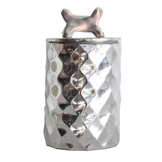 Who's been a good dog? That's right! You know who, your favorite furry family member! Store your sweet pup's treats in these chic-mod diamond cut Dog Treat Canister by Julia Knight. With the hand crushed mother of pearl infused enamel and the signature thumbprint swirl on sand cast aluminum, you can now have fashion and function at its finest! The Pet Collection is food safe with a soft pad installed at the base for counter safety.
