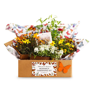Garden Kit Includes: (1) One Gallon locally native milkweed and a selection of (5) 4” plants that are ideal for attracting butterflies. There is no guarantee of which exact 4” plant come in the box because our selection changes weekly, making each box unique. This plant selection may include lantana, scabiosa, verbena, coreopsis, gaura, etc.