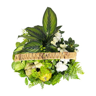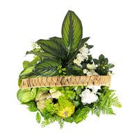 A White Autumn Pumpkin with greens and ferns nestled in a charming basket brings a touch of natural elegance to any fall setting. The soft white hue of the pumpkin contrasts beautifully with the lush greenery and textured ferns, creating a sophisticated yet cozy display. It’s a refreshing twist on traditional autumn colors, perfect for brightening tables, mantels, or entryways.