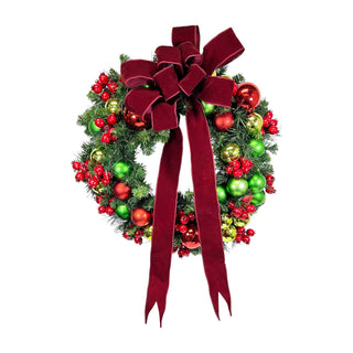 Welcome the warmth of the season with this elegant Faux Wreath with Balls & Red Bow – 24". Its rich, full greenery paired with vibrant red accents brings a touch of timeless charm to your fall decor. Whether hung on a door, above a mantel, or in a window, it instantly transforms your space with a festive yet cozy appeal that bridges the transition from autumn into the holiday season.