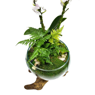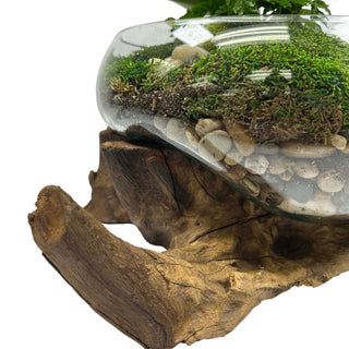 An orchid in a small teak root vase brings effortless elegance and organic warmth to any interior. Sculptural roots and natural wood grain contrast beautifully with refined blooms, blending modern design with earthy character. Compact yet visually captivating, it fits shelves or consoles easily, creating a refined focal point without overwhelming the space.